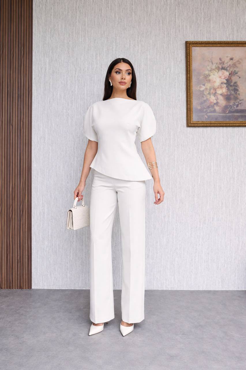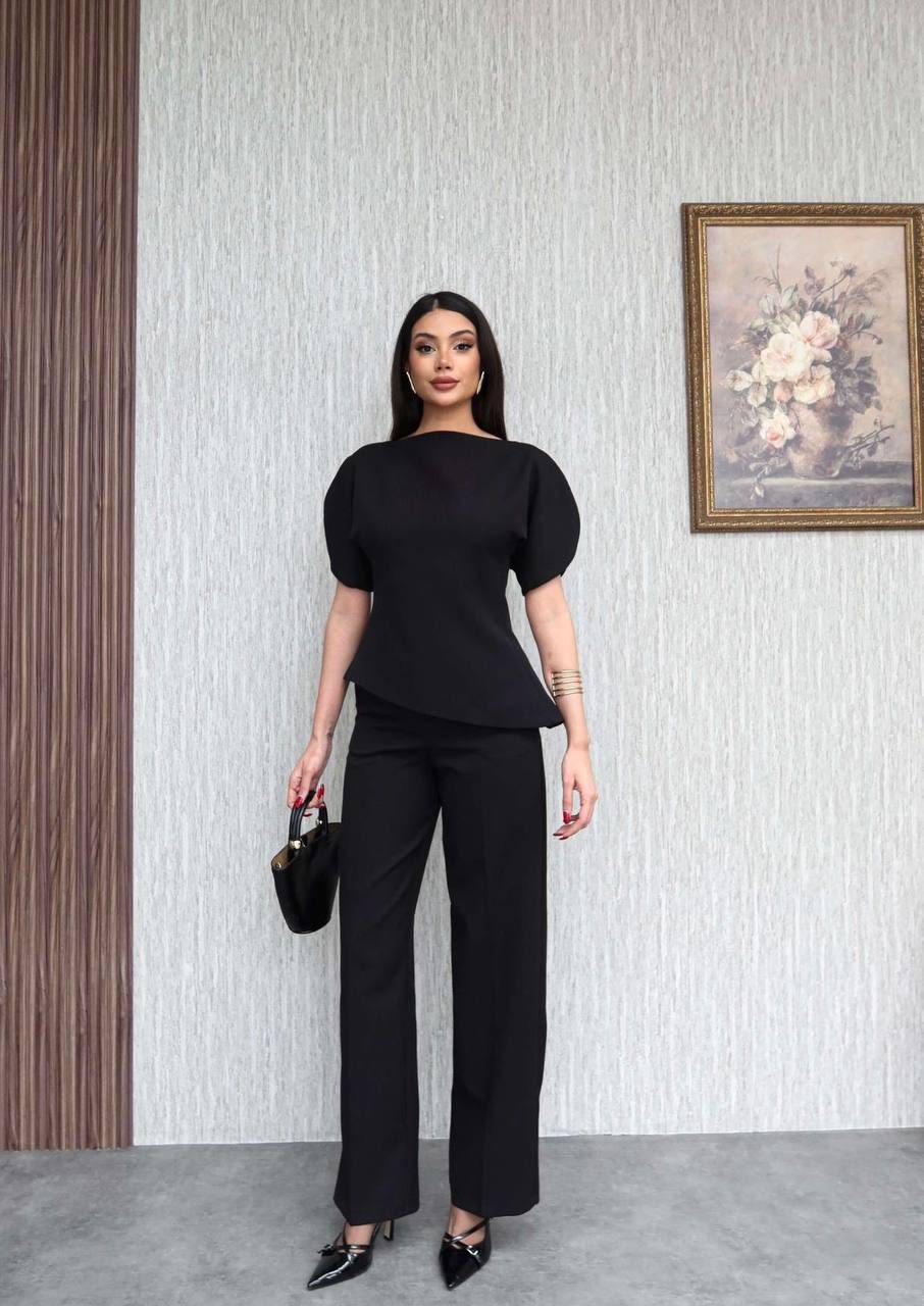 Realizat dintr-un material de calitate, plăcut la atingere, setul oferă confort pe tot parcursul zilei, fără a compromite stilul. Pantalonii cu croi drept alungesc vizual silueta, iar bluza adaugă un aer sofisticat și contemporan.