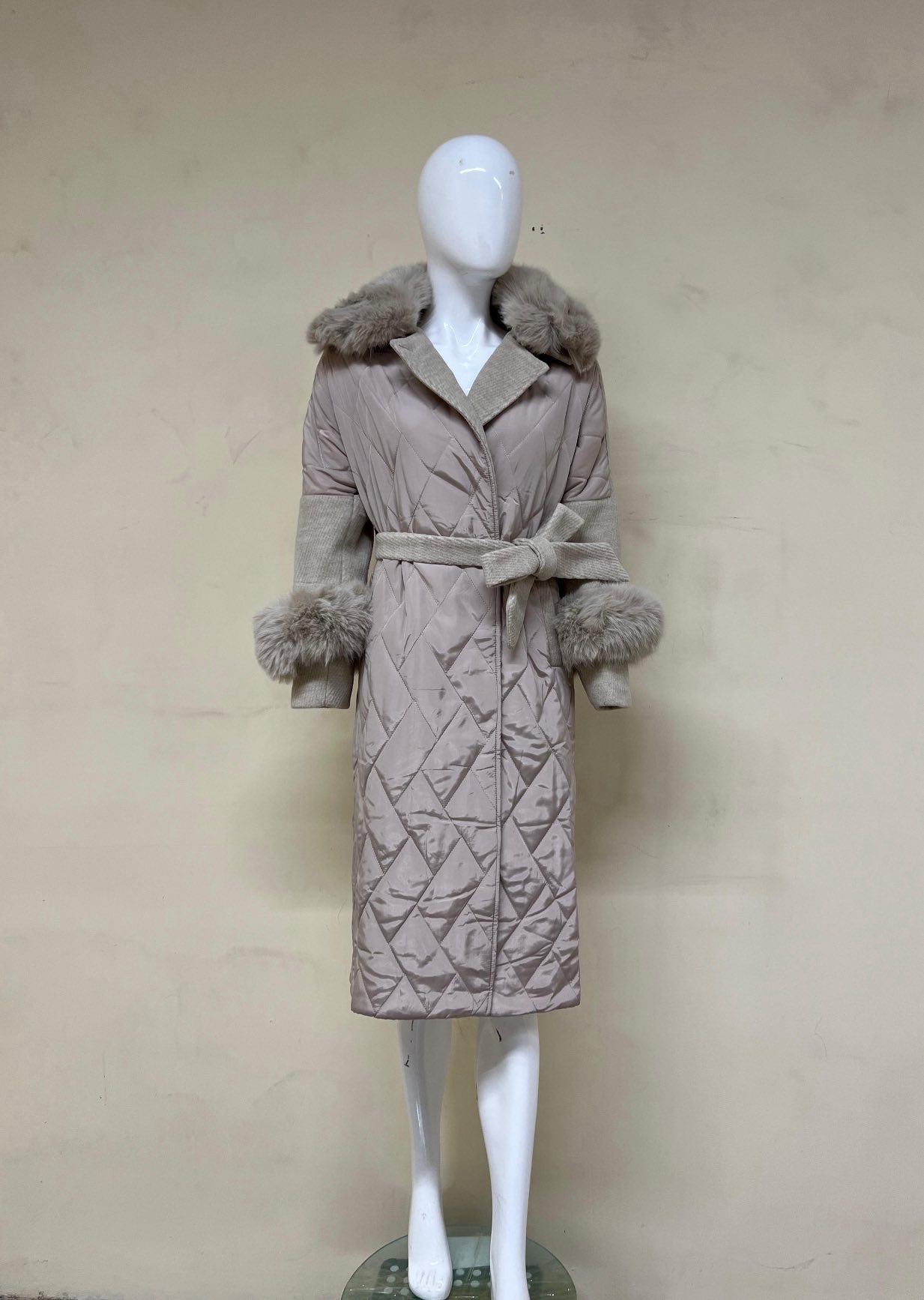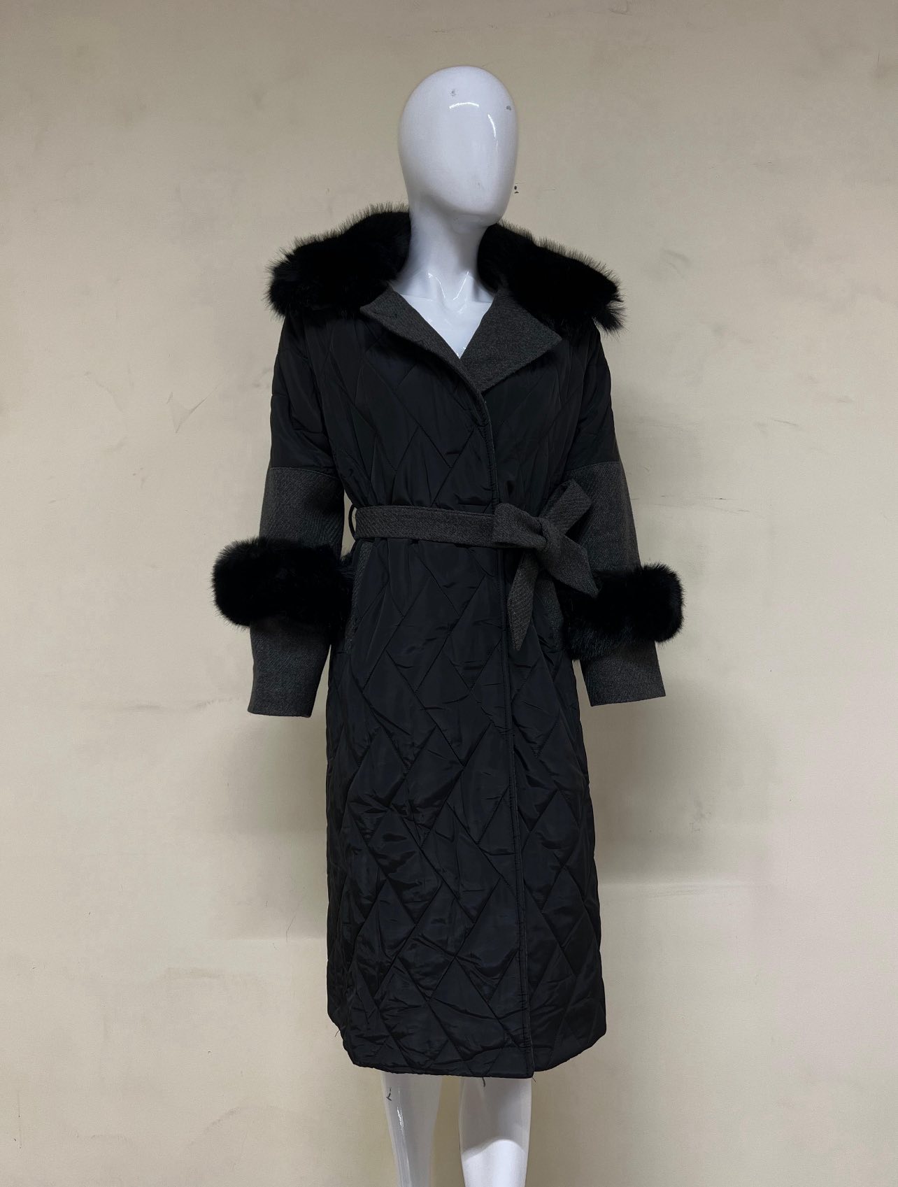 Geaca din Fas cu Insertie Stofa si Blanita Detasabila